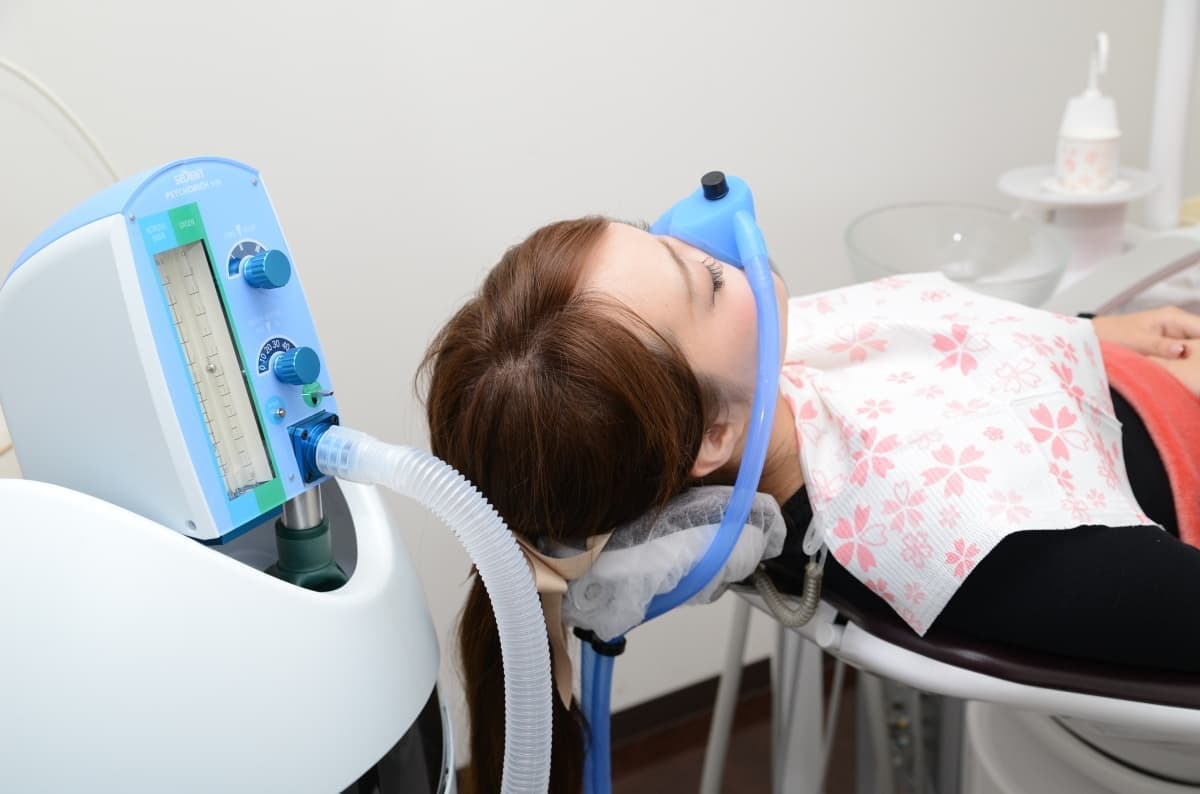 笑気麻酔は、酸素に笑気(亜酸化窒素)という気体を混ぜて鼻から吸い込む麻酔法です。